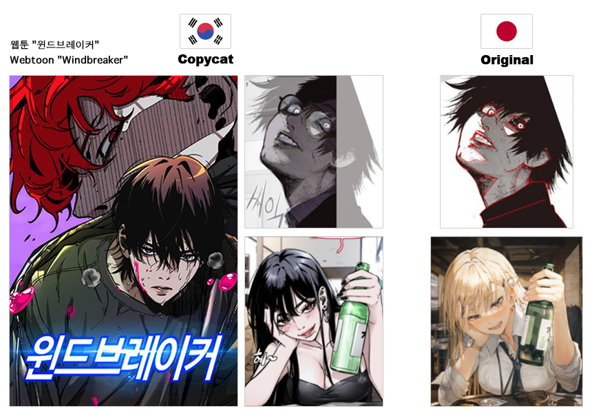 2025年7月14日 韓国のウェブ漫画ネイバー・ウェブトゥーンで2013年12月8日から12年も連載している看板作品「ウィンドブレーカー(윈드브레이커)」は、以前から構図,演出,表情,ペン先,明暗など盗作疑惑が出ていたが、11日、漫画家「チョ・ヨンソク」が盗作やトレーシングの事実を認め「失望させてしまい申し訳ない」と謝罪。これを受けウェブトゥーンは14日、作品の全削除と有料会員の返金(仮想通貨) に応じると発表しました。