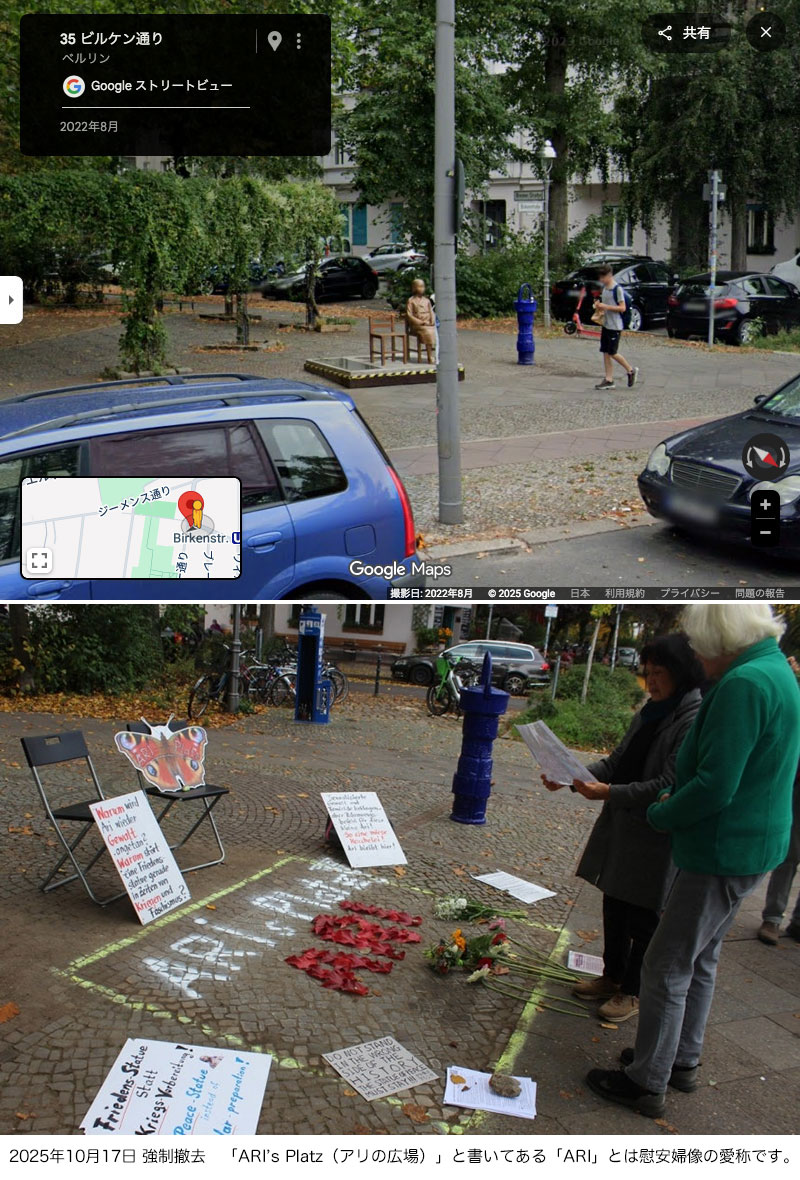 10月17日 同団体と地域住民が撤去を阻止する中、警察官が制圧し行政代執行「強制撤去」が行われ更地になりました。「平和の少女像」と銘打ちながら、決して平和裡にいかなかったドイツ・ベルリン市民は、韓国人と関わってしまったことを後悔していると思います。