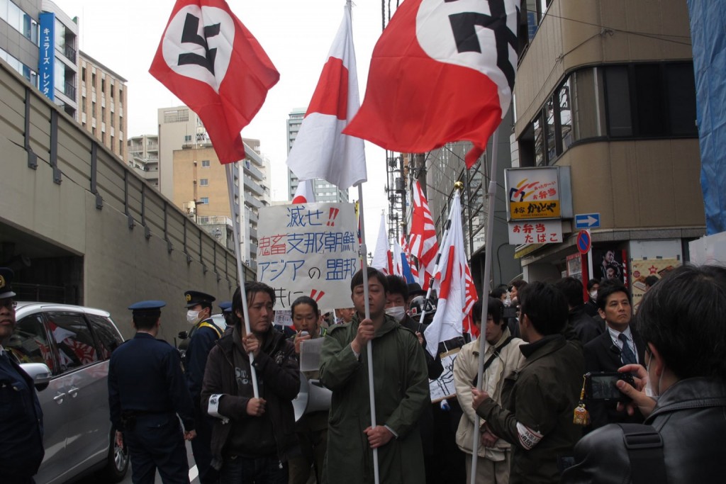 日本国内の嫌韓デモなど「ヘイトスピーチ(嫌悪発言)」現場で使われる旗です。
