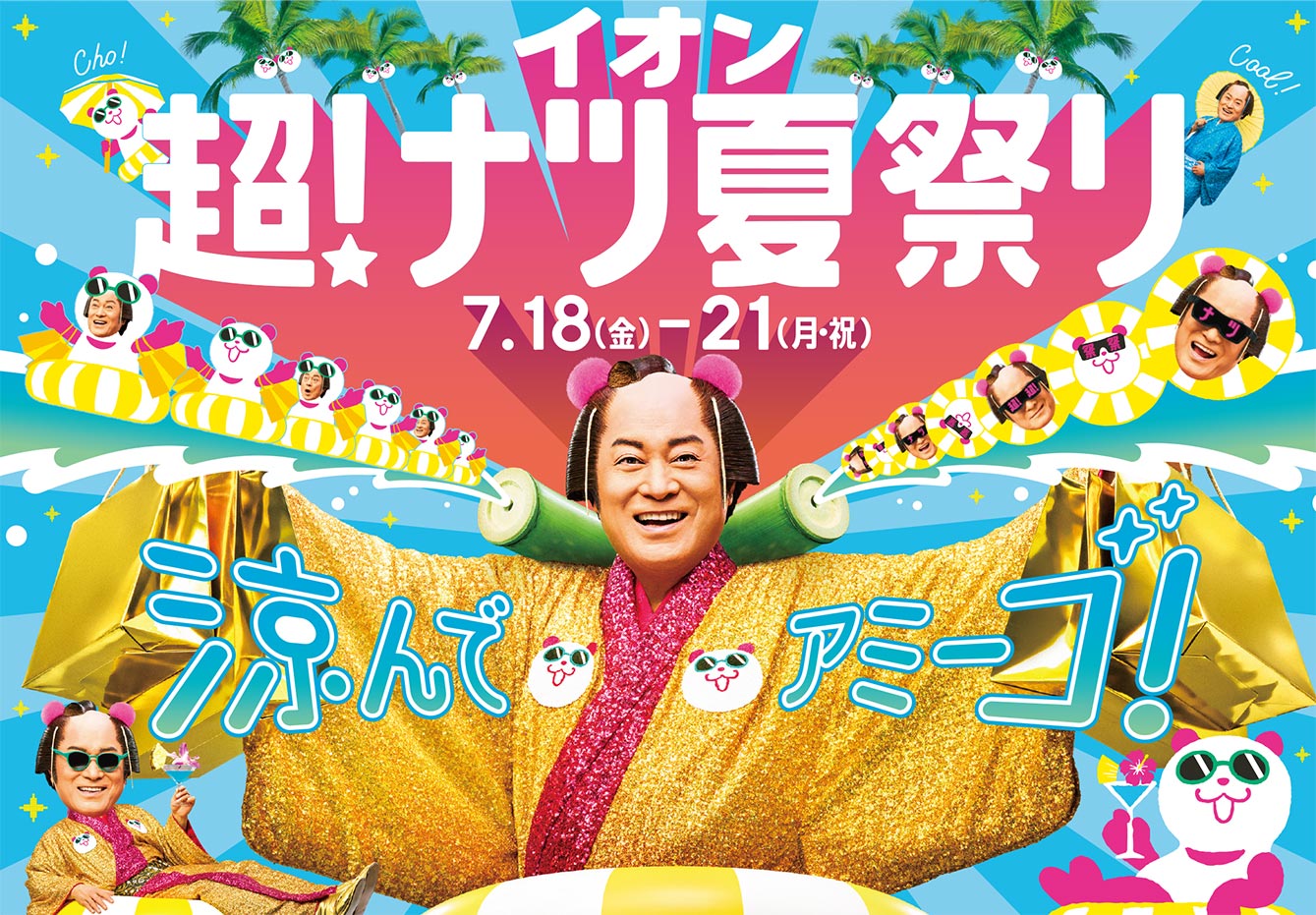 パンダこりゃ 楽しいっ! イオン超!ナツ夏祭り~♪ 毎年恒例、イオンの超パワフル企画!イオン超!ナツ夏祭り! 7月18日金曜日から、27日日曜日まで、イオンを丸ごと楽しむ、超エンタメな10日間! 涼んでアミーゴ! マツケンパンダ