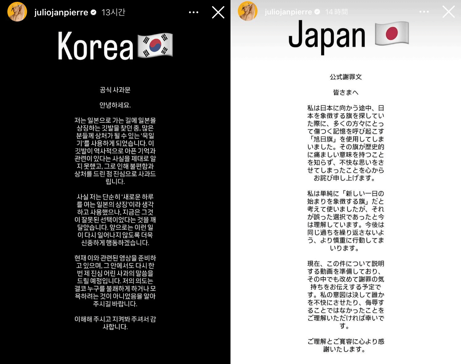 この抗議に対してピエールさんは、10月1日、自身のSNSを通じ「不快な思いをさせてしまった」と韓国語に続き日本語でも謝罪文を出しました。