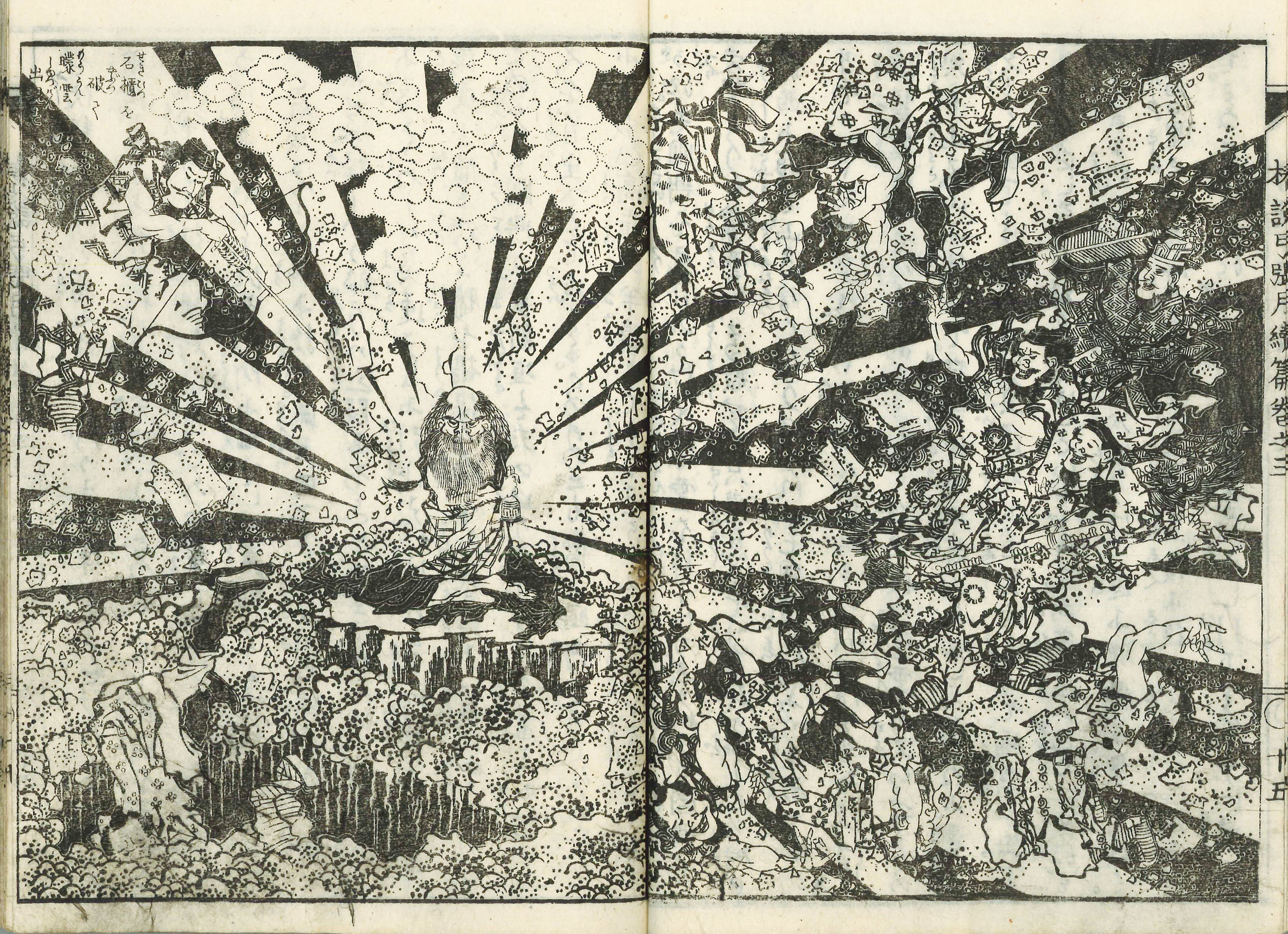 江戸時代の浮世絵師「葛飾北斎(かつしか ほくさい:1760年10月31日生 〜 1849年5月10日没)」の『椿説弓張月(ちんせつゆみはりづき)』続編 巻三より