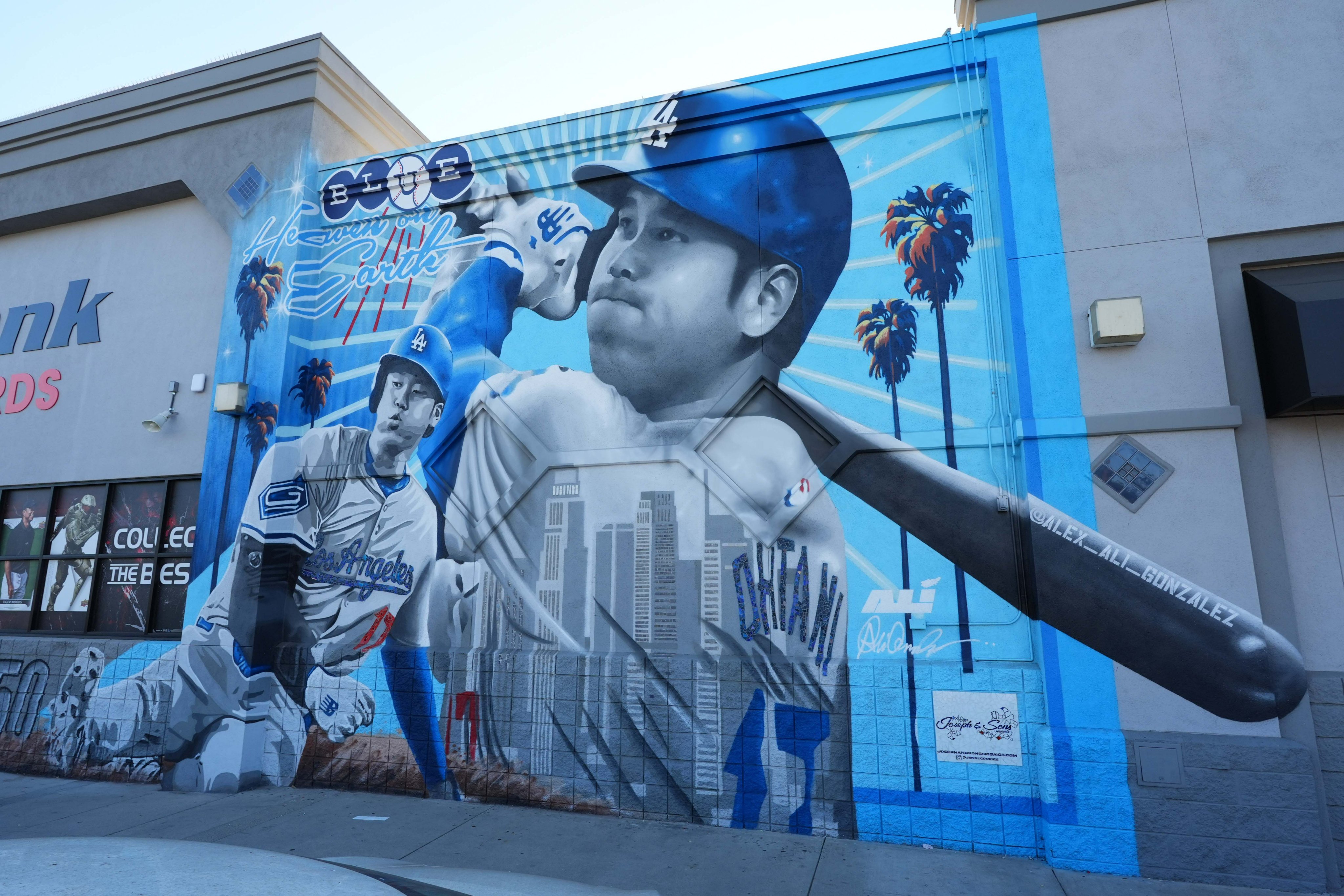 2025年3月頃、オープン戦を前にカリフォルニア州ロサンゼルス郡の都市バーバンク、ハリウッド・ウェイにあるスポーツ・カード・ショップ「Burbank Sportscards」に大谷翔平の壁画が登場しました。50/50は、2024年9月19日にMLB史上初の大記録を打ち立てた50本塁打50盗塁です。